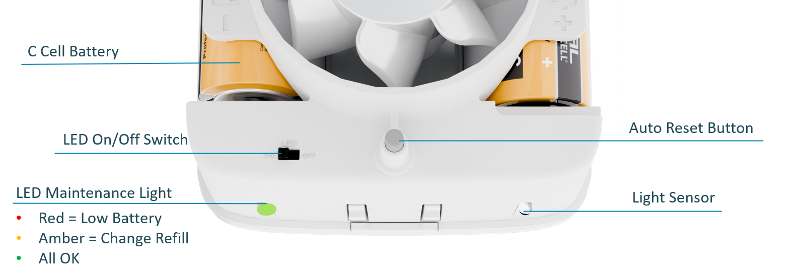 Insert the refill.  Insert the batteries.  Close the cover.  Mount the dispenser.  Leave for 30 Days.