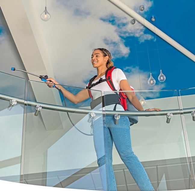 The Numatic RSU150NX Sanitise Pro is a high-pressure misting disinfection system engineered for rapid, reliable, and highly effective sanitisation across all environments. Delivering 99.999% efficiency in inactivating and destroying pathogens, this cordless system combines advanced technology with exceptional productivity, comfort, and performance.